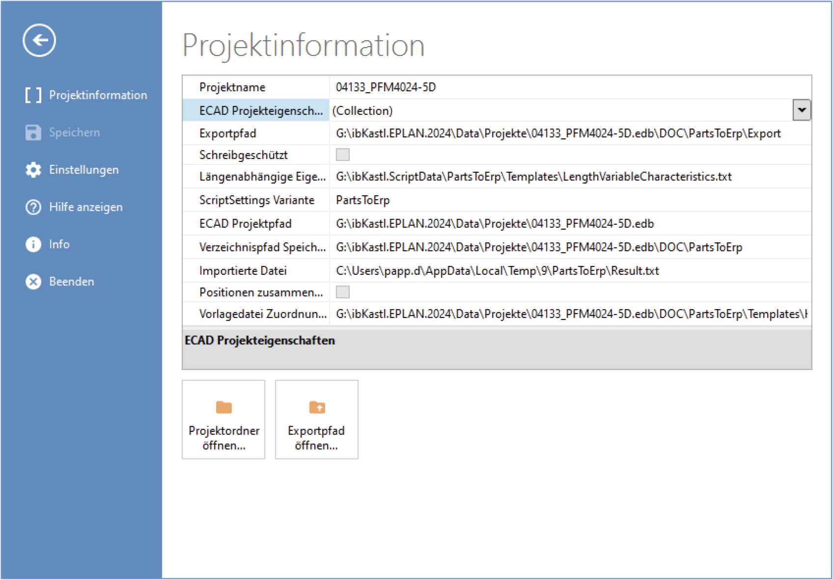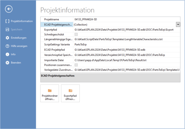 Optimiertes Verhalten beim zusammenfügen von mehreren EPLAN Stücklisten mit Projektinformationen Benutzeroberfläche: