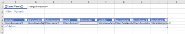 Die neuen Excel-Vorlage ermöglicht das genaue Konfigurieren der Ausgabe. Neben Platzhaltern für alle relevanten Eigenschaften können verschiede „Tags“ verwendet werden um standard-Operationen die Anpassung der Spaltenbreite oder das Gruppieren von Elementen. Weiterer Informationen zu den Möglichkeiten erhalten Sie auf der Produktseite unter Anleitung. Mit der neuen Excel Vorlage sind nun auch Dateien mit Makros im Format .xlsm möglich.