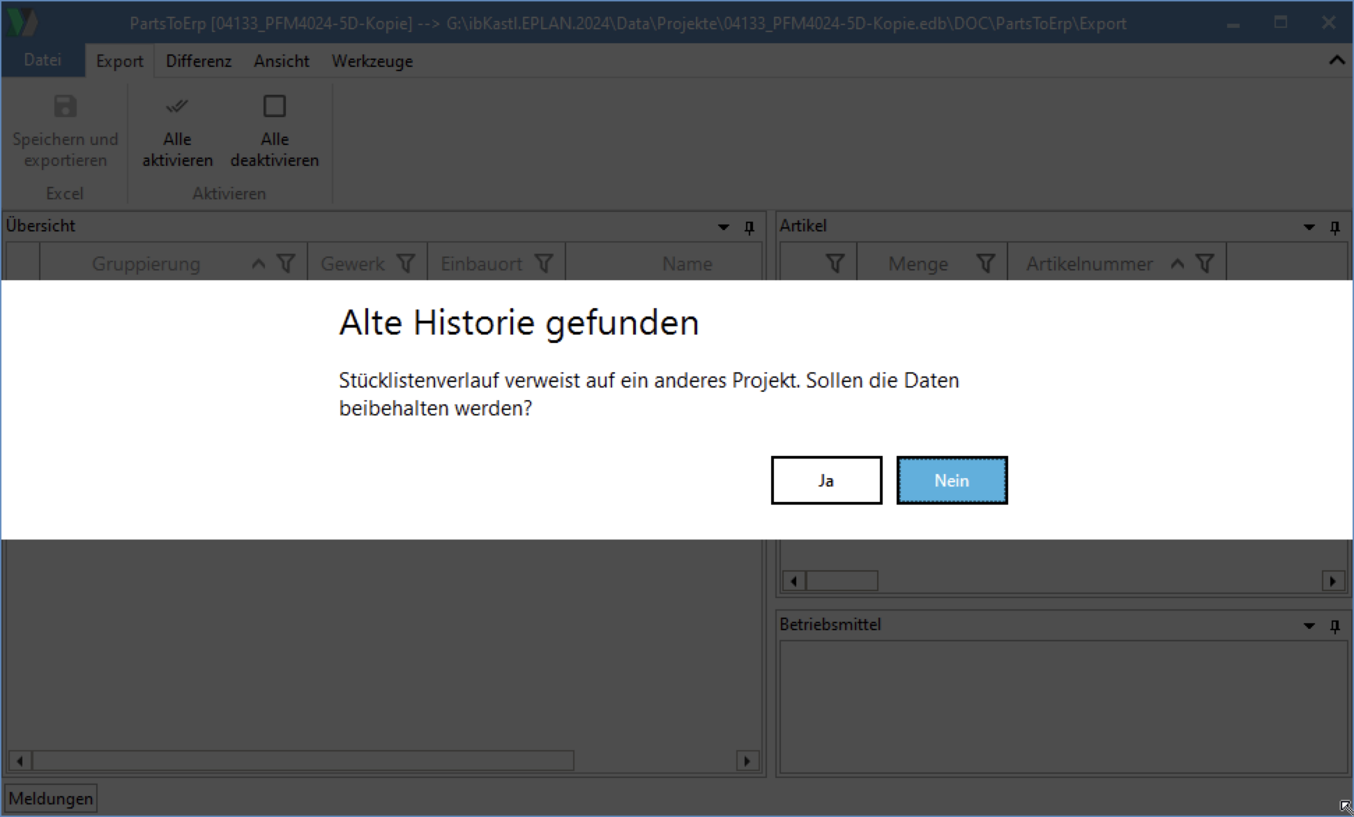 EPLAN Export löst keine Fehlermeldung