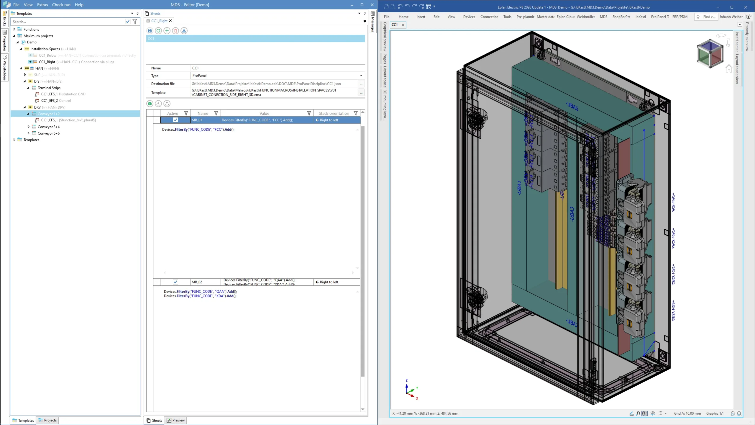 Die Disziplin Pro Panel ist das CAD1-AddOn für den MD3 Editor. Sie ermöglicht die automatische Generierung von 3D-Schaltschrankmodellen in Eplan Pro Panel aus Ihrem konfigurierten Projekt.
