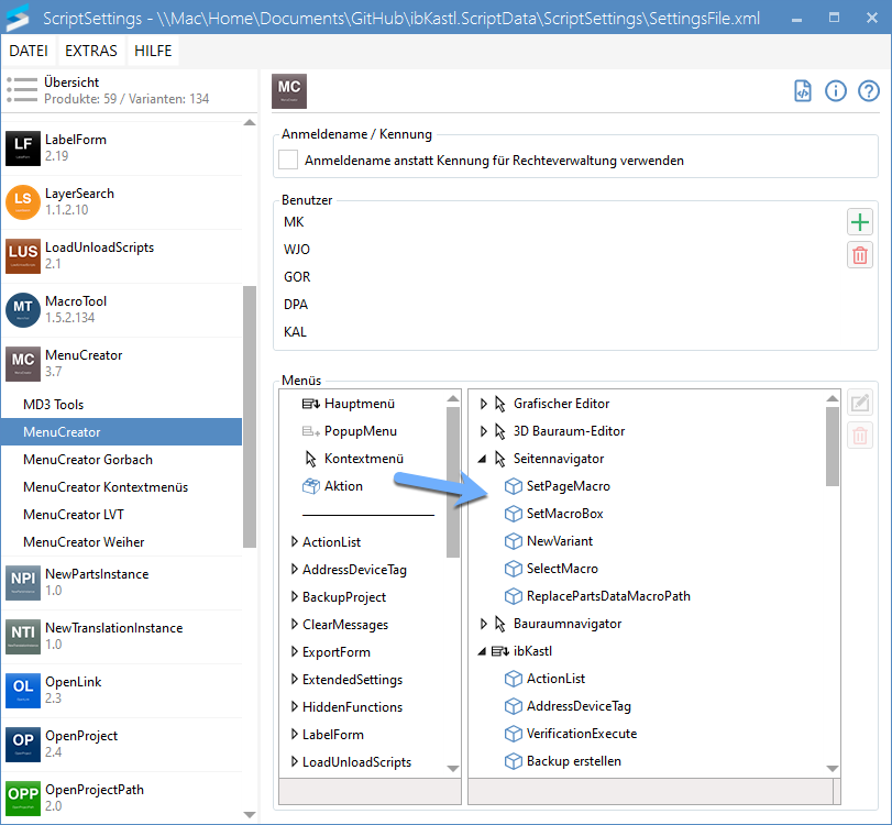 In ScriptSettings einrichten