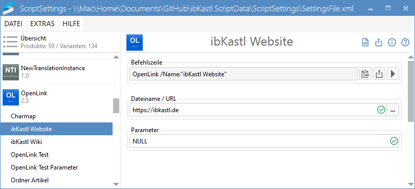 Die Befehlszeile kann kopiert werden und für den Aufruf zum Beispiel in eine Schaltfläche (Toolbar) eingefügt werden.