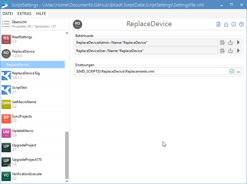 In ScriptSettings einrichten