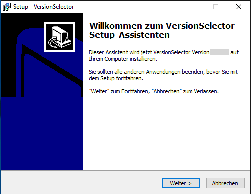 Mit einem Doppelklick auf die Datei VersionSelector_x.x.x.x.exe starten Sie die Installation des VersionSelector.
