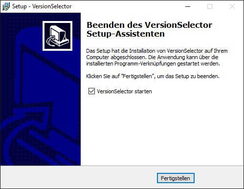 Mit Fertigstellen wird die Installation abgeschlossen und der VersionSelector kann gestartet werden.