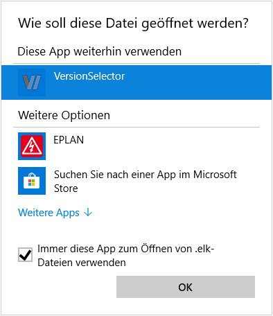 Beim ersten Doppelklick auf ein EPLAN-Projekt muss der VersionSelector als Standardprogramm ausgewählt werden:
